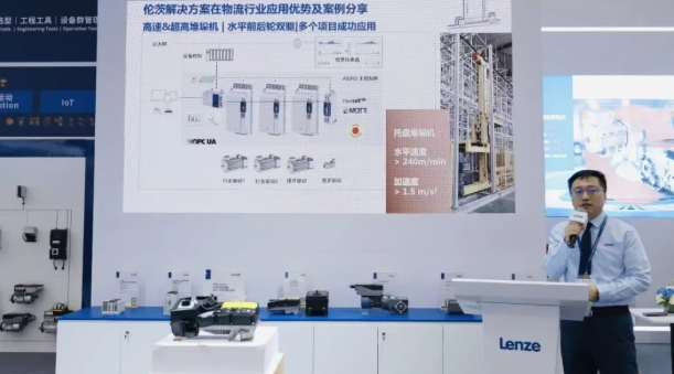 Ông Changxing Gao, Giám đốc Kinh doanh Ngành Logistics Trung Quốc của Lenze, đã giới thiệu tại hiện trường rằng giải pháp này đã được áp dụng thành công trong một số tình huống quan trọng. Ví dụ, tại Trung tâm Vận hành Tô Châu của Anta, cần cẩu xếp chồng được trang bị hệ thống Lenze đã đạt tốc độ ngang 5,4 m/giây. Trong một dự án băng tải cho một nhà sản xuất pin lithium hàng đầu, giải pháp động cơ thông minh đã tiết kiệm hơn 80% cáp và cải thiện đáng kể hiệu quả lắp đặt.